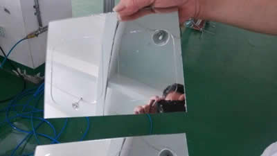 As máquinas CNC para corte de vidro de 2 eixos são usadas para o corte de vidro de espelhos retrovisores automóveis e de motociclos, espelhos de maquiagem, lentes de aumento, vidros para electrodomésticos e vidro fotovoltaico.