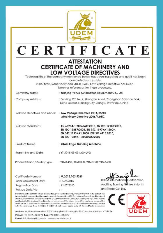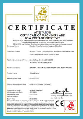 Ao mesmo tempo, as lavadoras de vidro de pequena dimensão de dupla face e as lavadoras de vidro de curvatura acentuada são patenteadas nacionalmente. As máquinas para corte de vidro, máquinas lapidadoras para vidro, motores de alta velocidade para lapidar e lavadoras de vidro possuem o selo de aprovação CE.